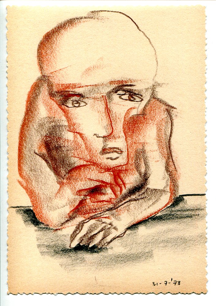 - Serie I-3: Zelfportret 14-09-1973 (conté)