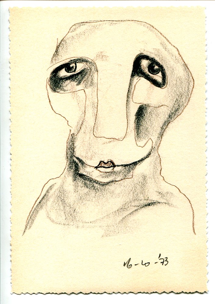 - Serie I-5: Zelfportret 16-10-1973 (conté)