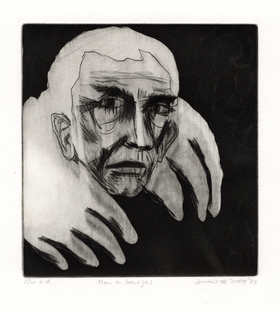 Man in bontjas, ets, 1982